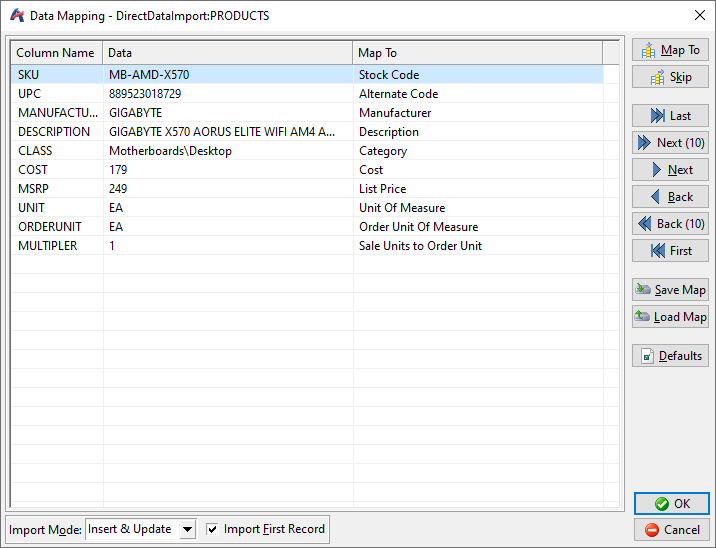 Atrex even makes importing stock codes, customers, and vendors easy. When importing the information, you have the ability to map data from your source file into specific fields in Atrex. By allowing you to map the data, you can import information from just about any dBASE, Comma Delimited, Tab Delimited file as well as from most ODBC sources. You can even save the mapping information that you set up for use during future imports such as price updates from your suppliers. |