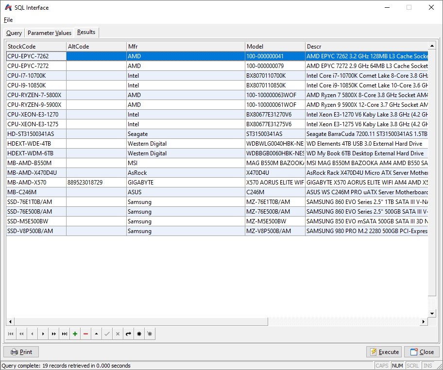 And for the power user, the SQL interface allows ad hoc reporting directly from the Atrex data tables. A visual query builder is available to assist with simple query design, or you can manually key in complex queries. |
